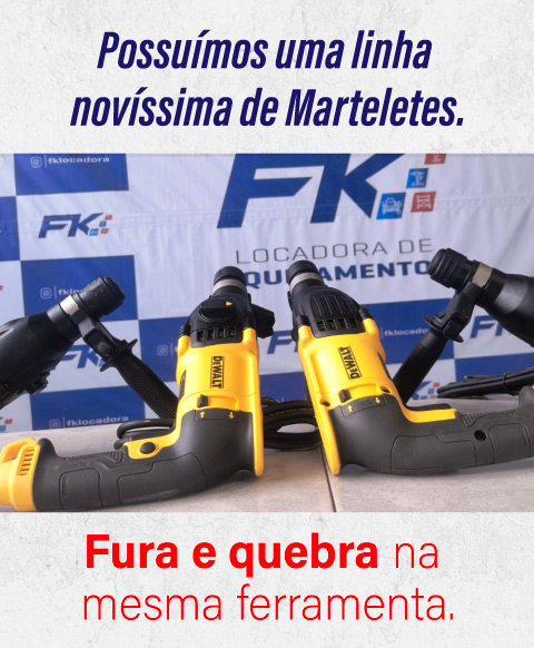 A experiência com a FK Locadora, pra mim é excelente, é muito fácil trabalhar com eles, a excelência vem desde o atendimento e a entrega dos equipamentos, que são ótimos novos e variados.